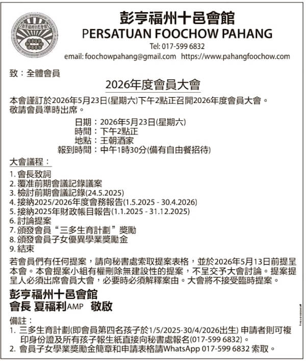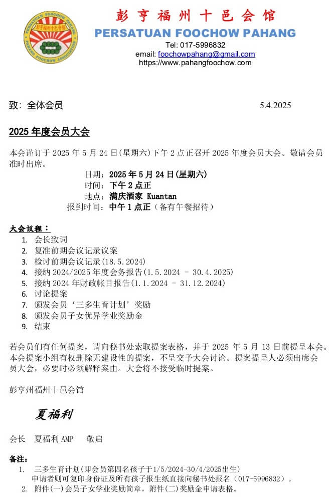 彭亨福州十邑會館全體仝人恭賀夏福利會長受封AMP勳銜,